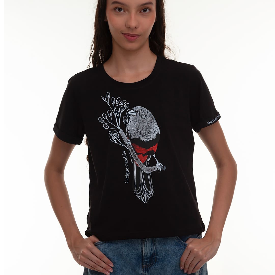 Inspirada en el Cacique Candela, un ave endémica de Colombia con un plumaje que parece fuego en medio del bosque. Esta camiseta lleva una ilustración que resalta su fuerza y elegancia, como un símbolo de libertad y color latinoamericano.