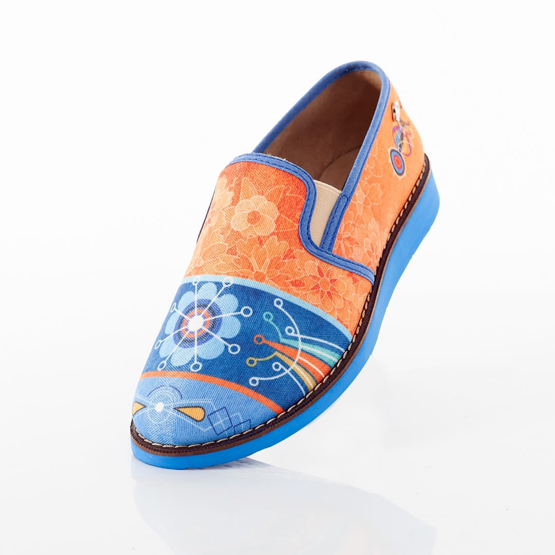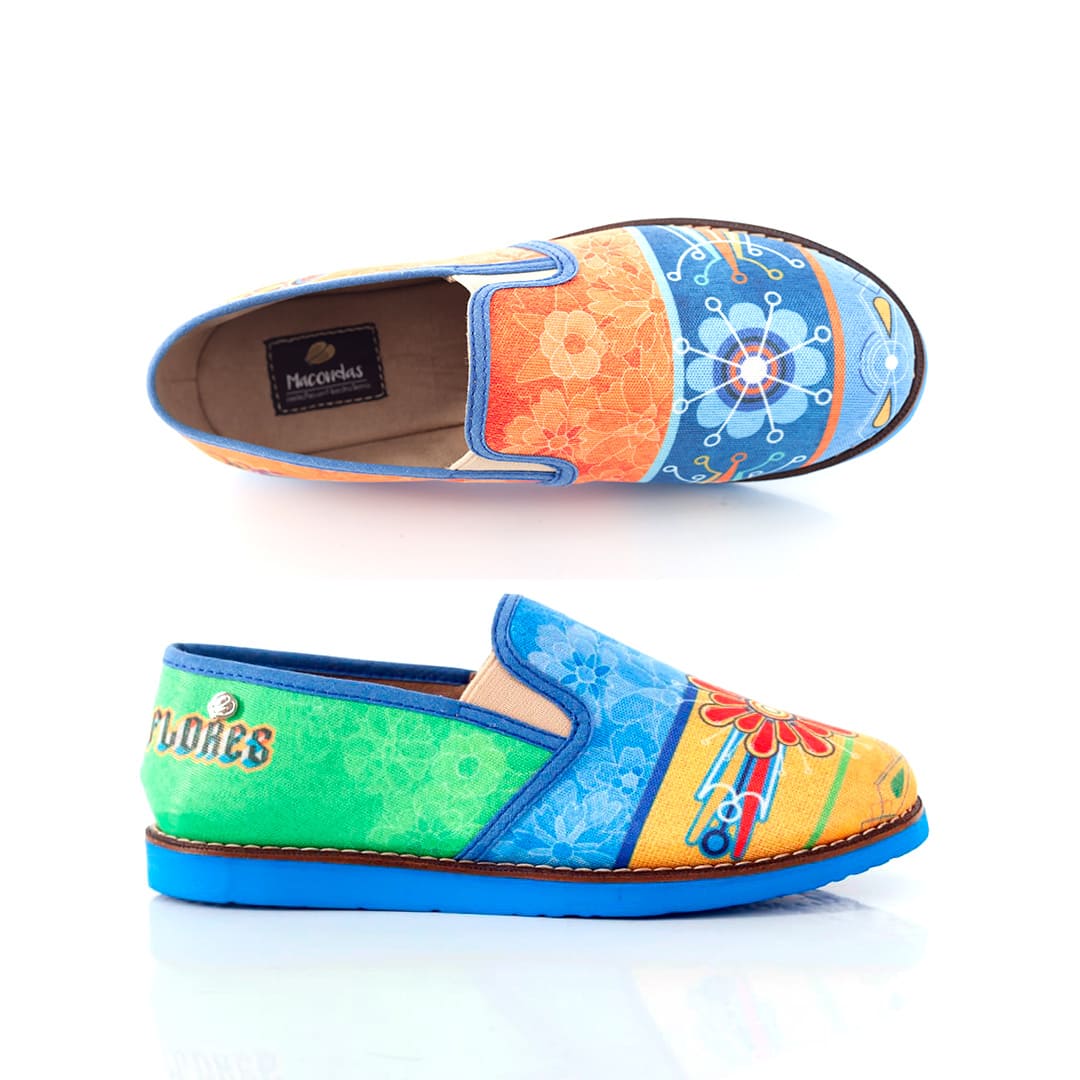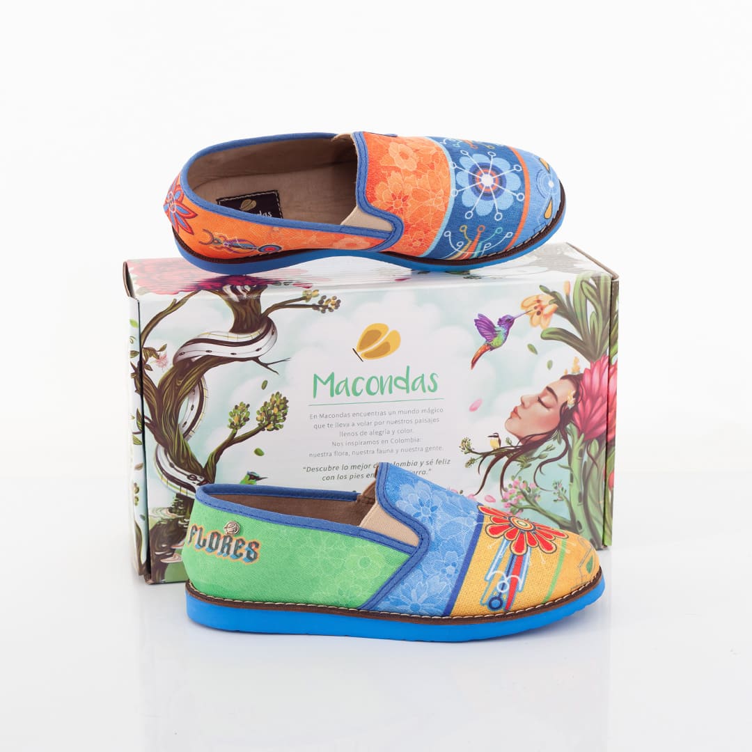 Estos Zapatos Colombianos, son más que zapatos: son una celebración de nuestra identidad. Su diseño vibrante fusiona ilustraciones de flores con los elementos decorativos típicos de las chivas, logrando un equilibrio perfecto entre color, alegría y raíz cultural.
