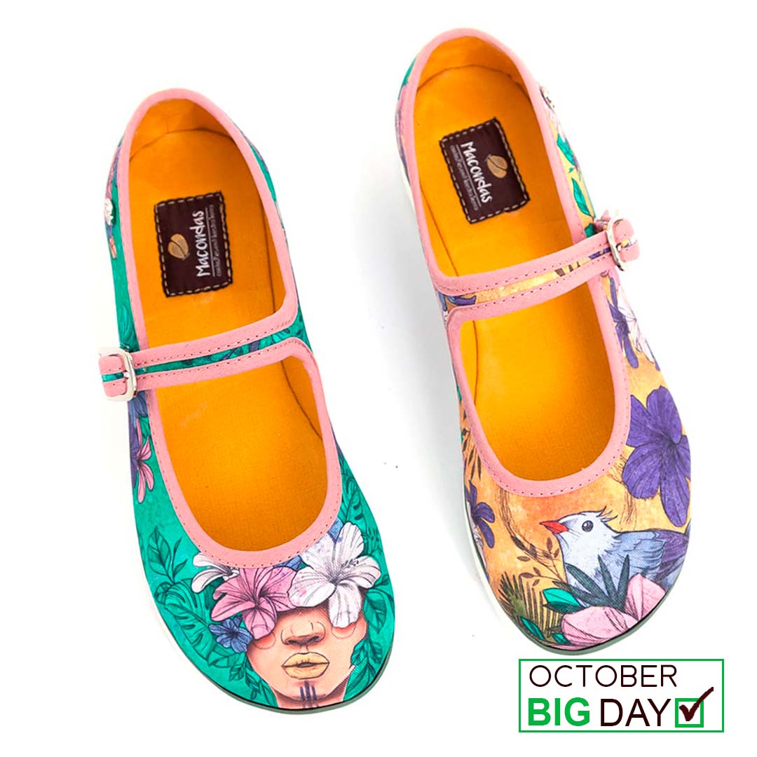 Las Macondas, zapatos realizados por artesanos y/o artistas, son fabricadas en lona de calidad superior que resiste a lavadas sin motearse, sus diseños artísticos están impresos con procesos y maquinaria de última generación que resiste a gran cantidad de lavadas sin cambiar el color. Su forro y plantilla en lona 100% algodón harán que tus pies estén siempre frescos. Macondas posee una suela en EVA y caucho de alto confort, flexible y antideslizante. Lava tus Macondas a mano con jabón y un cepillo de cerdas suaves y sécalas siempre a la sombra. Solicita siempre la talla que usas con mayor frecuencia ya que nuestro tallaje es normal de acuerdo a medidas internacionales, solo si tienes duda consulta la tabla de tallas y sigue las instrucciones al pie de la letra.