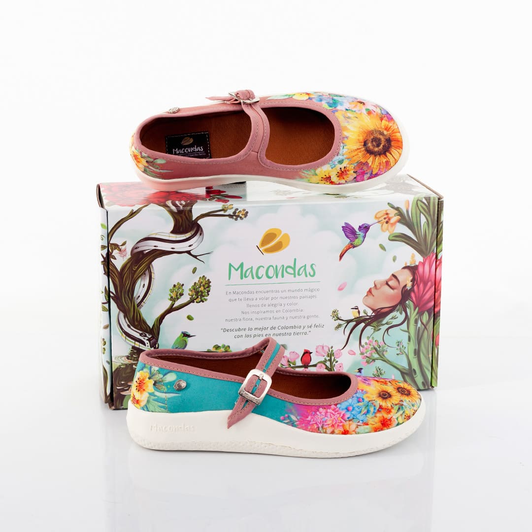 Las Macondas son zapatos diseñados por artesanos y/o artistas y fabricadas en lona de calidad superior que resiste a lavadas sin motearse, sus diseños artísticos están impresos con procesos y maquinaria de última generación que los hace resistentes a gran cantidad de lavadas sin cambiar el color. Poseen un forro fabricado en poliéster suave y una plantilla acolchada para mayor confort. Las Macondas deportivas tienen una maravillosa suela fabricada con una aleación de EVA que la hace liviana y flexible, más caucho para que sea antideslizante.