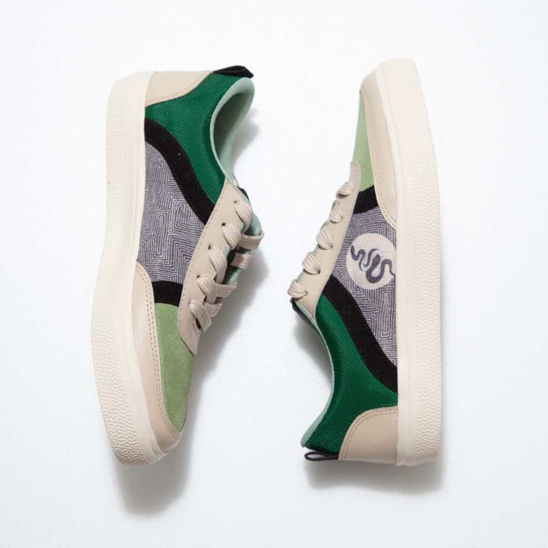 Inspirados en el mito ancestral de la Anaconda amazónica, símbolo de transformación, fertilidad y conexión sagrada con la vida, los Tenis Energía Anaconda Macondas® transmiten la fuerza y el misterio de la selva. Cada trazo evoca el movimiento majestuoso de este ser mitológico, acompañando tus pasos con la energía que da origen al universo.
