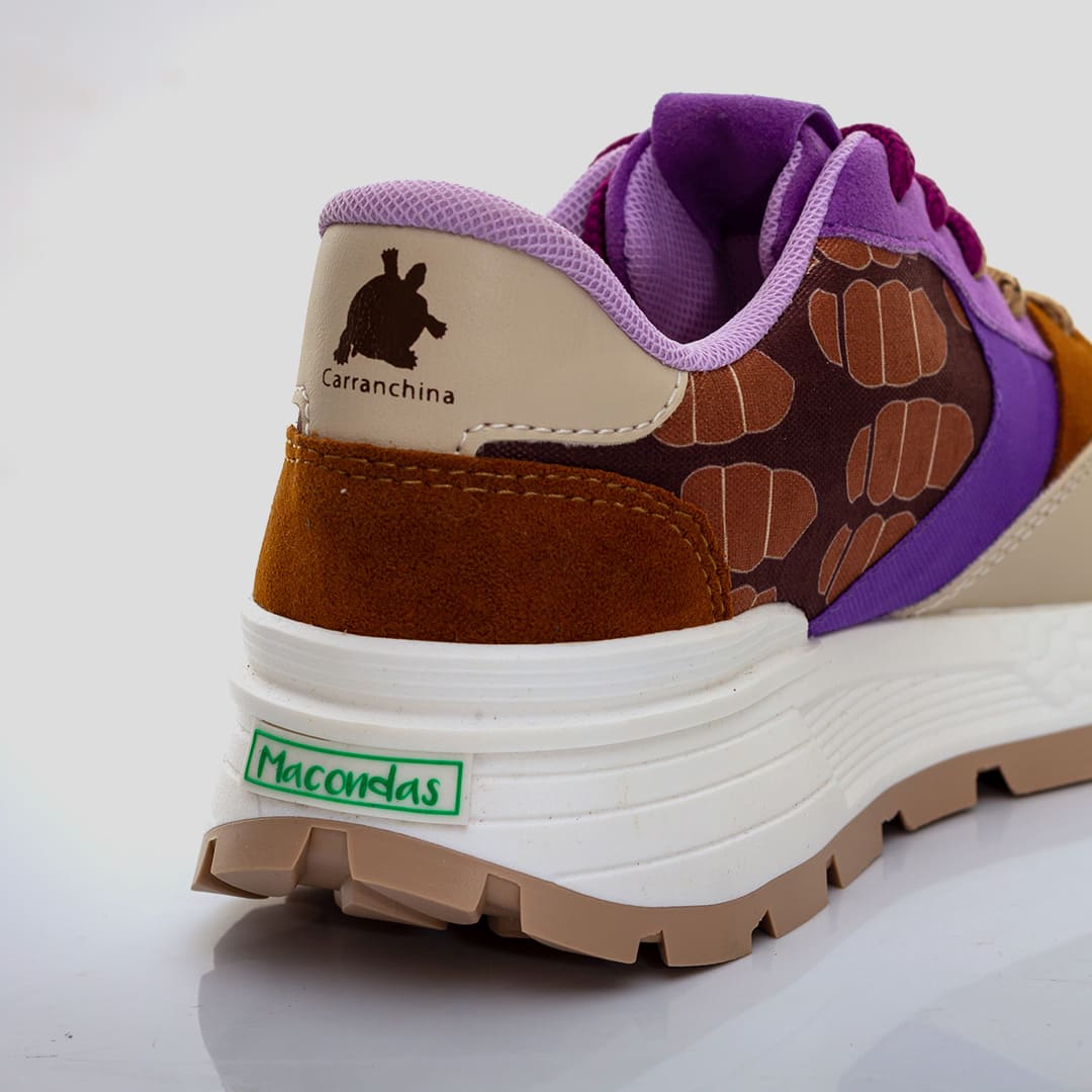 Conectar con lo más esencial a través de lo que cubre y protege. Así nace Carranchina, un diseño que transforma el caparazón de esta tortuga en un lenguaje gráfico que se vuelve calzado. Con estos tenis Macondas, no solo caminas la naturaleza —te la vistes.
